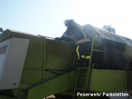 Zu einem erneuten Brand einer landwirtschaftlichen Maschine wurden wir am frühen Sonntagabendd alarmiert. Wie sich dann heraustellte hat sich bei den Mähdrescher von heute Nachmittag ein erneuter Schmorrbrand im Motorraum entwickelt. Die Feuewehr Parkstetten löschte diesen widerrum ab. Mit der Wärmebildkamera wurde erneut nach versteckten Glutnestern gesucht und diese dann abgelöscht.