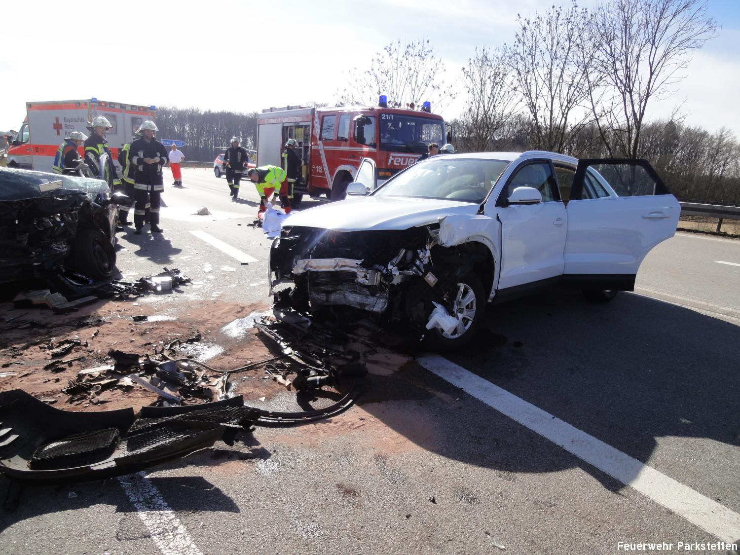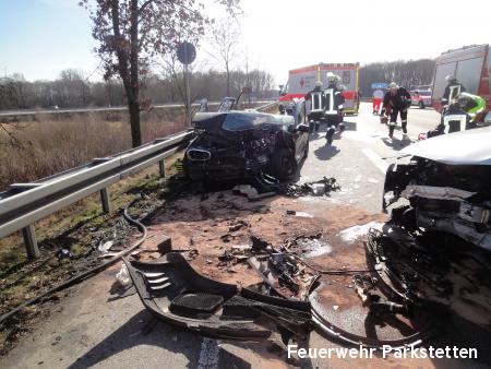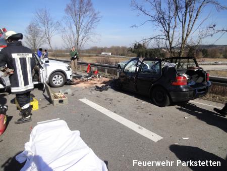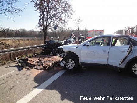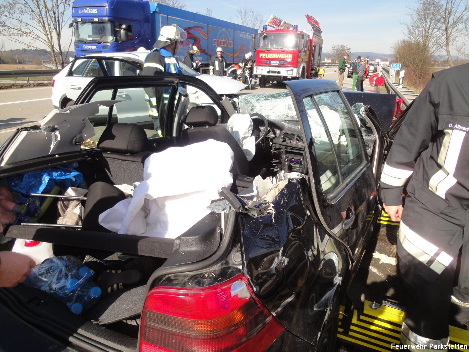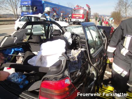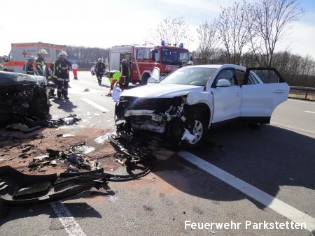 Zu einem schweren Verkehrsufnall auf die B20 wurden die Feuerwehren aus Parkstetten und Steinach am Samstagmittag alarmiert. Am Samstagmittag ist es gegen 11.35 Uhr zu einem schweren Unfall auf der B20 bei Steinach gekommen. Zwei Autos krachten im Gegenverkehr ineinander. Dabei gab es fünf Verletzte, die teils mittelschwer verletzt wurden. Eine Person musste durch die FF Steinach und die FF Parkstetten mit Hilfe der Rettungsschere und des Rettungsspreitzer aus dem Fahrzeug befreit werden.