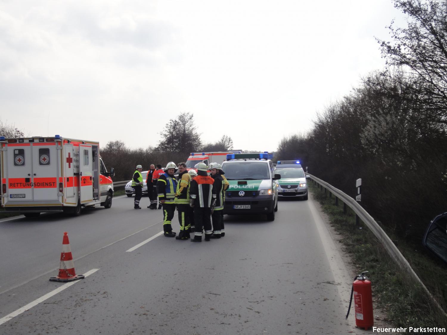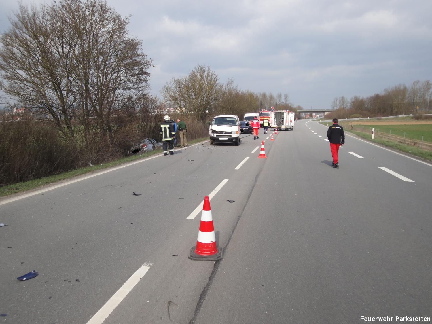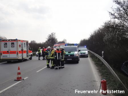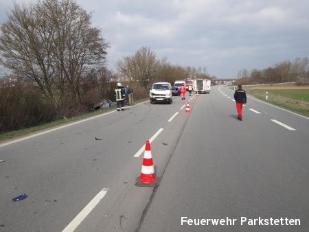 Zu einem schweren Verkehrsunfall mit 3 Pkws wurden wir am Montagmittag auf die B20 Höhe Ausfahrt Steinach alarmiert. Am Montag kurz nach 12 Uhr kam laut Polizei ein Autofahrer auf der B20, Höhe Steinach, aufgrund von Unaufmerksamkeit auf die Gegenfahrbahn. An dem anschließenden Unfall waren insgesamt drei Fahrzeuge beteiligt. Dabei wurden drei Personen verletzt, eine Person leicht - die anderen beiden mittelschwer. Aufgabe der Feuerwehren aus Steinach und Parkstetten war u.a. die Absicherung der Einsatzstelle, den Brandschutz an der Unfallstelle sicherzustellen und die Fahrbahn von den Fahrzeugteilen zu reinigen. Quelle: idowa.de