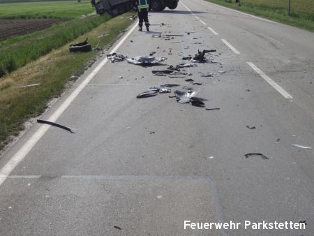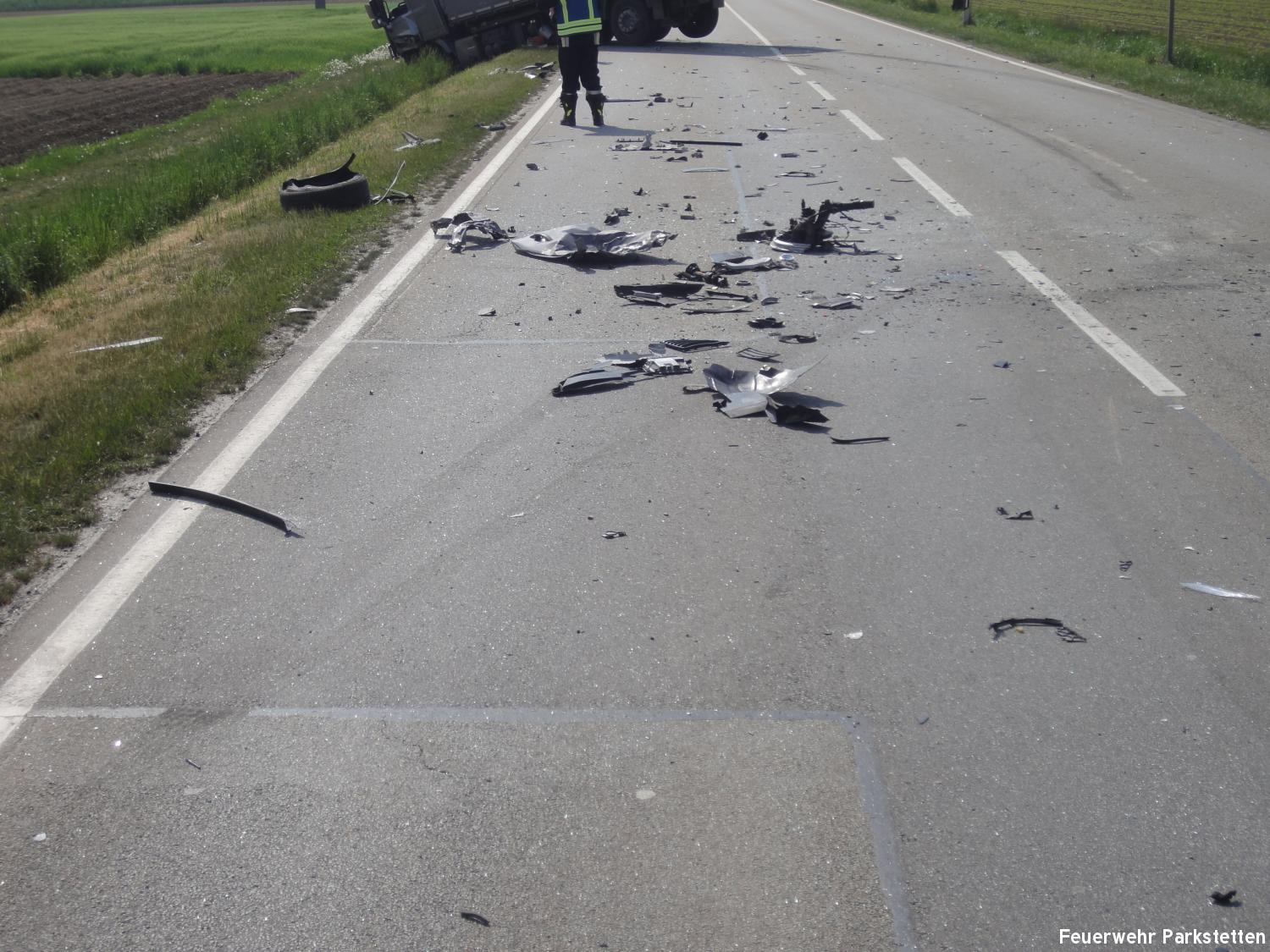 Am Mittwochnachmittag , gegen 14.50 Uhr, wurde der Polizei ein schwerer Verkehrsunfall auf der Staatsstraße 2125, zwischen Straubing und Bogen, mitgeteilt. Ein 22-Jähriger war mit seinem Auto von Straubing in Richtung Bogen unterwegs. Kurz nach der Reibersdorfer Kreuzung kam er mit seinem Pkw aus ungeklärter Ursache auf die Gegenfahrbahn. Der 40-jährige Fahrer eines entgegenkommenden Lastwagen konnte nicht mehr ausweichen und es kam zu einem Frontalzusammenstoß. Die beiden Fahrzeuge kamen im Straßengraben zum Liegen. Der Fahrer des Pkw wurde eingeklemmt und musste von der Feuerwehr Parksttten befreit werden. Mit schweren Verletzungen wurde der 22-Jährige von einem Rettungswagen in das Klinikum Straubing gebracht. Der Lastwagenfahrer wurde leicht verletzt und mit einem Rettungswagen in das Krankenhaus Bogen gebracht. Die Fahrzeuge waren nicht mehr fahrbereit und mussten abgeschleppt werden. Während der Unfallaufnahme und zur Bergung des Lkw ist die Staatsstraße derzeit noch gesperrt. Der Sachschaden wird insgesamt auf etwa 80.000,- Euro geschätzt. Durch die eingesetzten Feuerwehren wird der Verkehr umgeleitet. Bericht: Wochenblatt