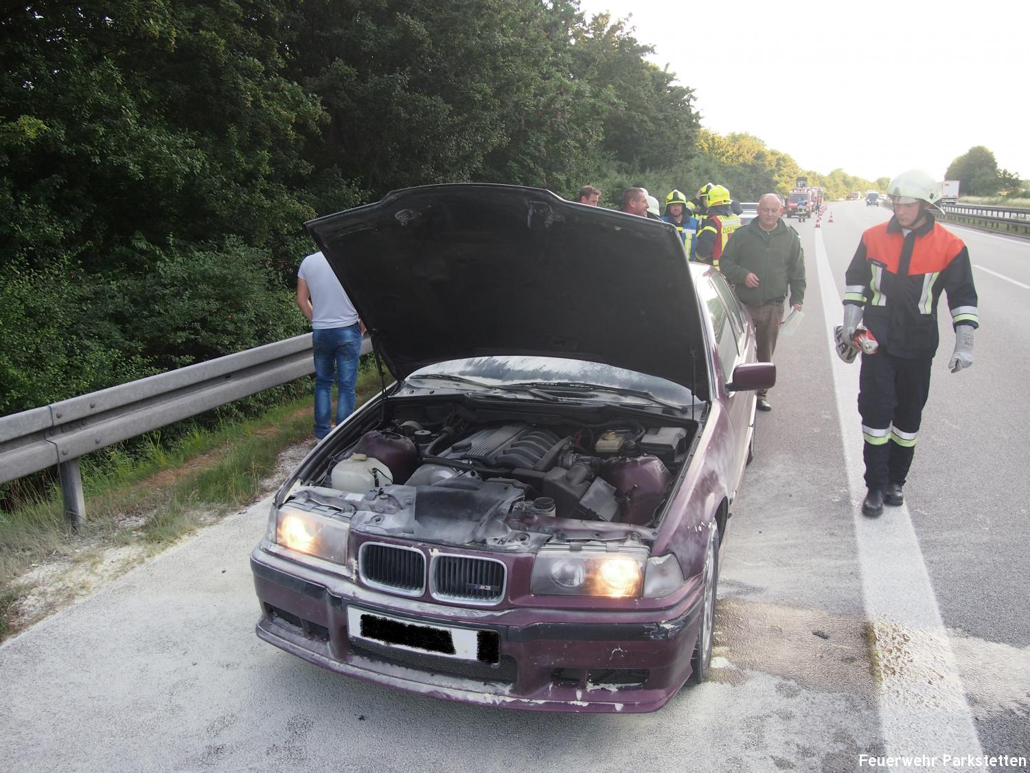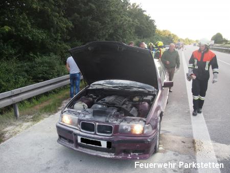 Zu einem Pkw Brand auf die BAB 3 zwischen Kirchroth und Straubing wurden wir am Donnerstagabend alarmiert. Nach dem die ersten Einsatzkräfte an der Einsatzstelle eintrafen konnte bereits Entwarnung gegeben werden. Aus bisher ungeklärter Ursache fing ein Pkw der in Fahrtrichtung Passau unterwegs war Feuer im Motorraum. Die Insassen des Fahrzeuges löschten den Brand mit Hilfe eines Feuerlöschers selbst. Die eingesetzten Feuerwehren konnten nach kurzer Zeit wieder Einrücken. Die Verkehrsregelung an der Einsatzstelle übernahm die Polizei.