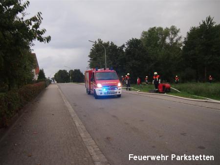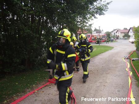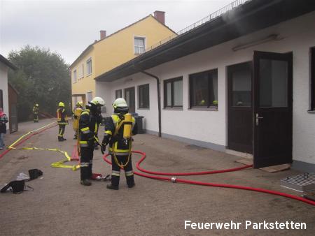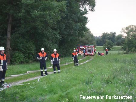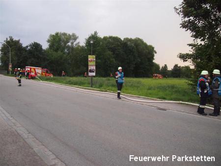 Um 18:30 Uhr wurden die Feuerwehren aus Kirchroth, Aufroth, Münster, Kößnach, Oberzeitldorn, Obermiethnach, Straubing und Parkstetten zu einer Einsatzübung nach Kirchroth alarmiert. Angenommen war ein Brand in einer Schreinerei, 1 Person in Gefahr. Aufgabe der Feuerwehren war es eine Wasserversorgung aus eine Bach aufzubauen und die Vermisste Person unter Atemschutz aus der Brennenden Schreinerei zu Retten.