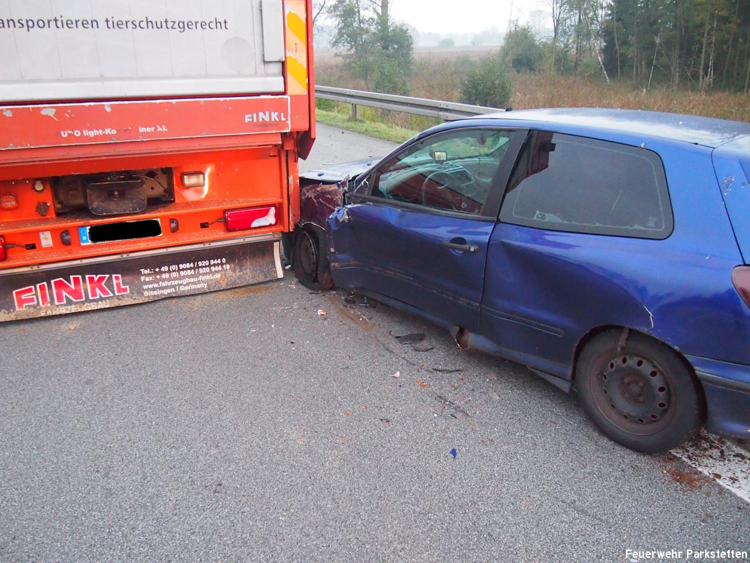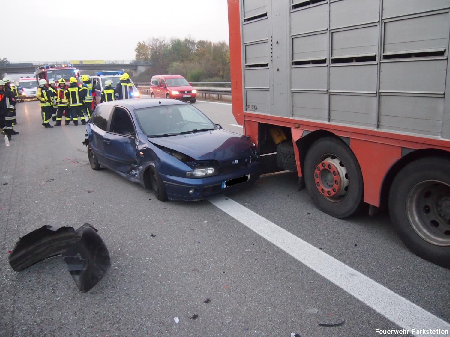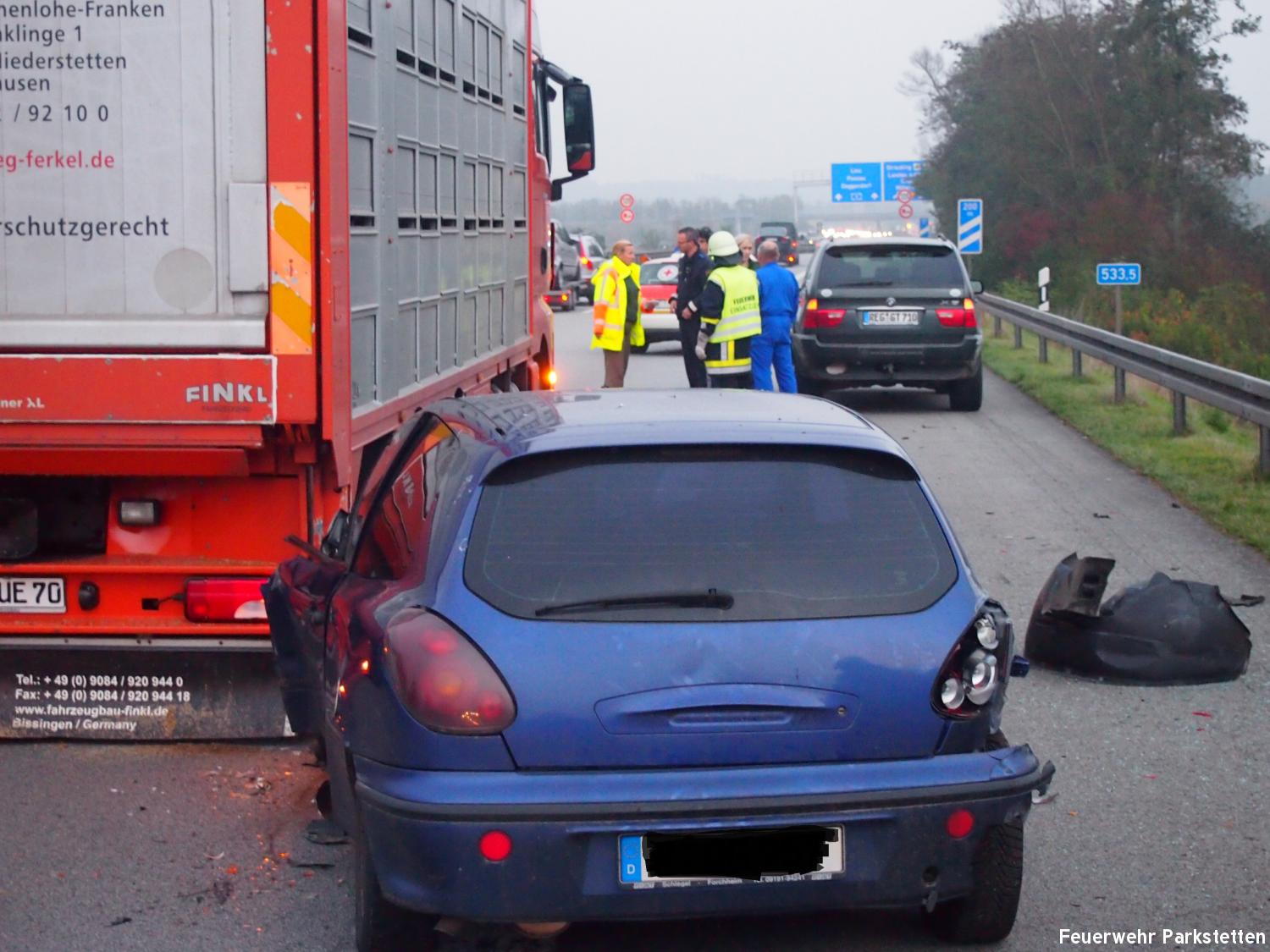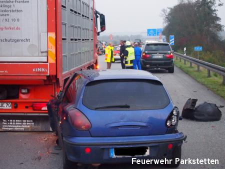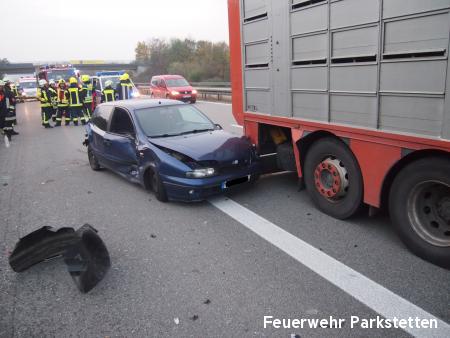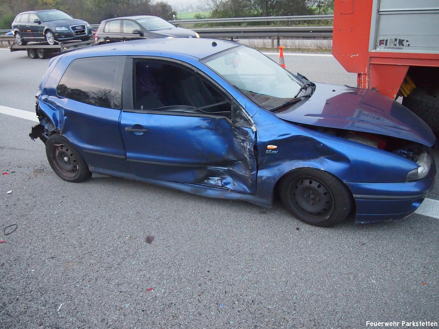 Zu einem Verkehrsunfall mit mehreren beteiligten Fahrzeugen wurden wir am Donnerstagnachmittag auf die BAB 3 alarmiert. Aus bisher ungeklärter Ursache kam es am auf der BAB 3 zwischen Kirchroth und Straubing kurz vor der Ausfahrt Straubing zu einem Verkehrsunfall bei dem 2 Pkws und 1 Lkw beteiligt waren. Alle Insassen in den Fahrzeugen konnten ihre Fahrzeuge selbstständig verlassen. 2 mussten mit leichten Verletzungen in umliegende Krankenhäuser gebracht werden. Aufgaben der Feuerwehren waren u.a. den Verekehr an der Unfallstelle mit Hilfe des VSA der FF Parkstetten vorbeizuleiten, das ausleuchten der Einsatzstelle sowie die Reinigung der Fahrbahn von den Fahrzeugteilen. Gegen 17:50 Uhr wurde die Einsatzstelle der Polizei übergeben und die Feuerwehren konnten wieder einrücken.