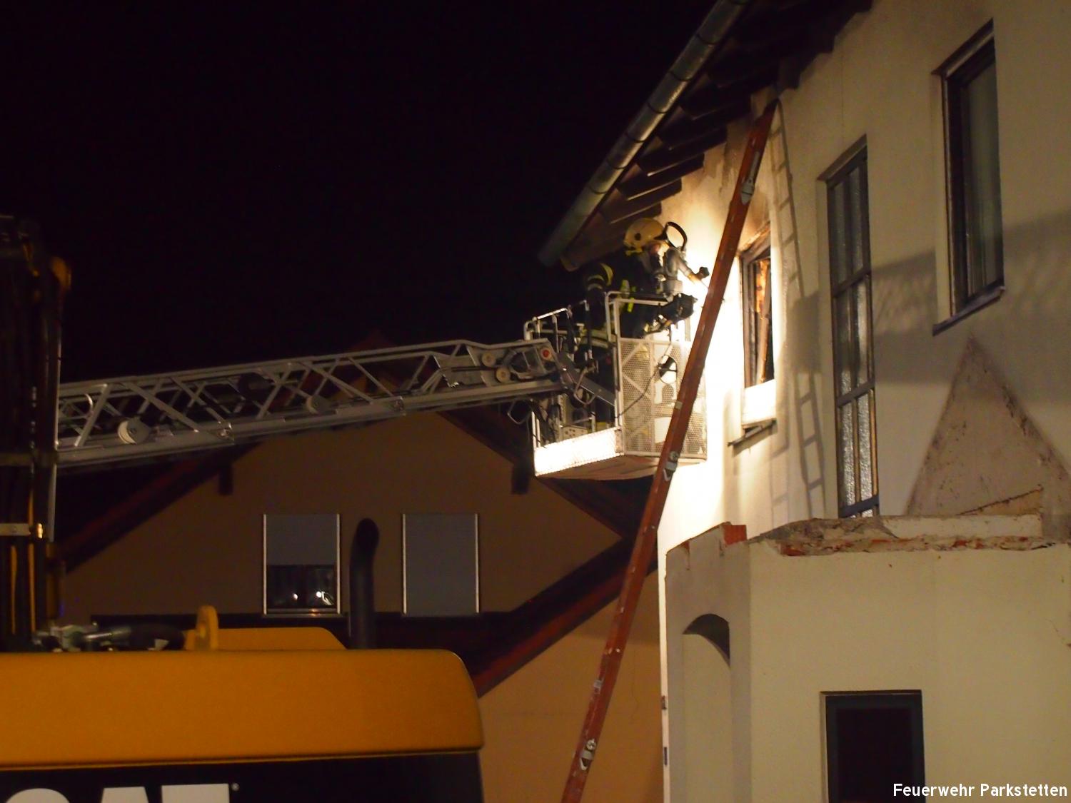 Zu einem Küchenbrand wurden wir am Sonntagabend nach Kirchroth alarmiert. Beim eintreffen der Feuerwehren stand die Küche im ersten Obergeschoss bereits im Vollbrand. Die Feuerwehren aus Kirchroth und Parkstetten gingen zur Brandbekämpfung mit schweren Atemschutz ins Haus vor und bekämpften mit 2 C-Strahlrohren den Küchenbrand. Über die Drehleiter der FF Straubing wurde auch ein Löschangriff von außen durchgeführt. Der Brand konnte schnell durch die eingesetzten Feuerwehren unter Kontrolle gebracht werden. Mit Hilfe der Wärmebildkameras der FF Kirchroth und Parkstetten wurde das Haus noch nach Glutnestern abgesucht. Mit Hilfe des Überdruckbelüfters wurde das Haus entraucht. Gegen 20:35 Uhr konnten die Feuerwehren die Einsatzstelle wieder verlassen.