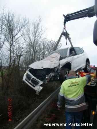 Am Sonntagmorgen wurden die Feuerwehren aus Parkstetten und Steinach zu einem Verkehrsunfall auf die B20 alarmiert. Die erste Lagemeldung der ILS Straubing war, das eine Person im Pkw eingeklemmt sei. Nach eintreffen der ersten Einsatzkräfte konnte zum Glück jedoch Entwarnung gegeben werden. Ein Pkw der in Fahrtrichtung Straubing auf der B20 zwischen der Ausfahrt Steinach und der BAB 3 unterwegs war kam aus bisher ungeklärter Ursache von der Fahrbahn ab und kam im angrenzenden Straßengraben zum Stehen. Alle Insassen des Pkws konnten sich selbst befreien. Aufgaben der Feuerwehren war es eine kurze Vollsperrung der B20 einzurichten, sowie den Pkw gegen weiteres abrutschen zu sichern und die Einsatzstelle auszuleuchten. Nach ca. 30 Minuten konnten die Feuerwehren die Einsatzstelle wieder verlassen. (Quelle Foto: FF Steinach)
