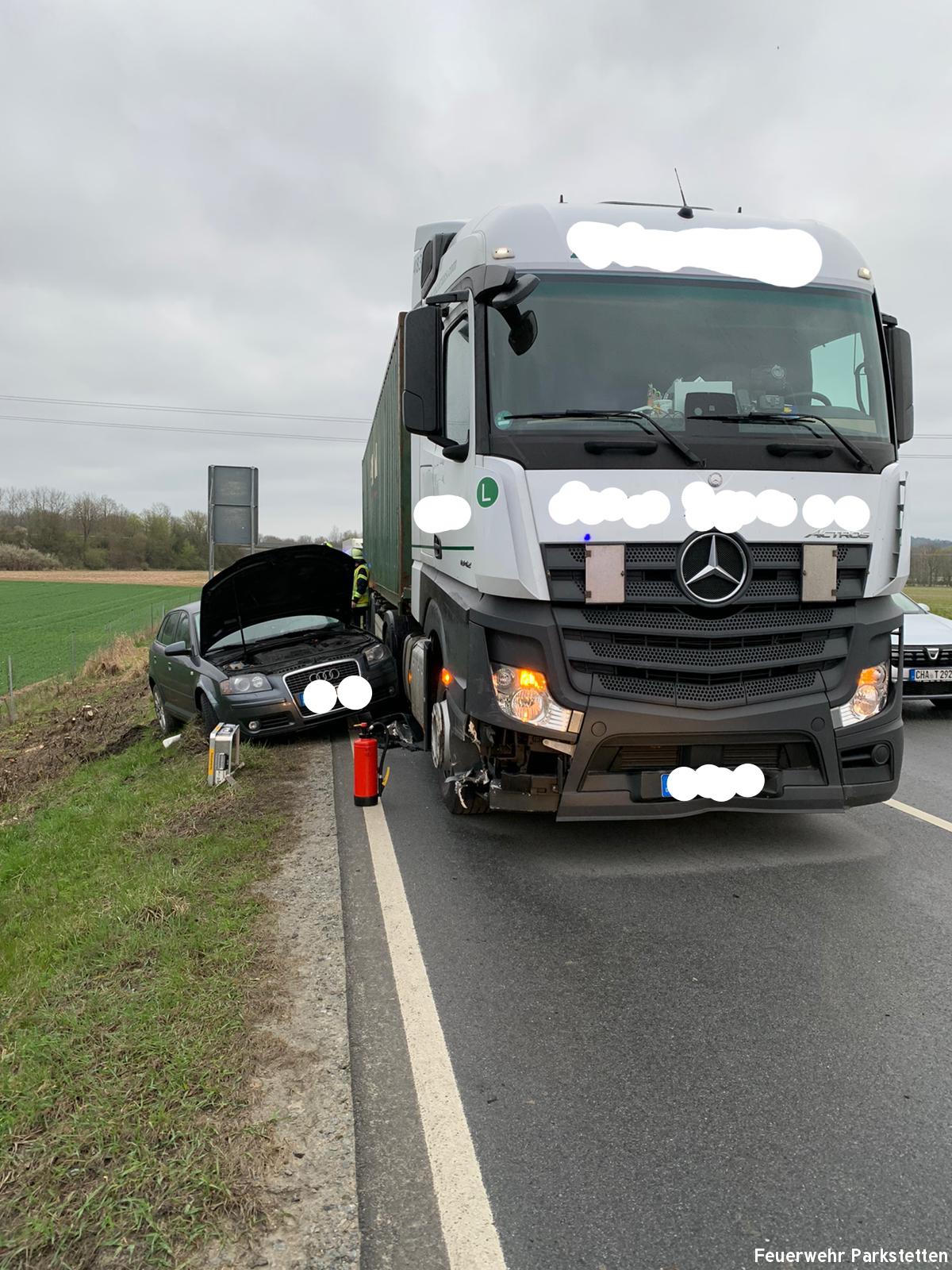 Aus ungeklärter Ursache stießen ein Pkw und ein Lkw zusammen. Personen waren nicht eingeklemmt. Aufgabe der Feuerwehr war es den Verkehr abzusichern und den Brandschutz sicher zu stellen. Personen kamen nicht zu Schaden.