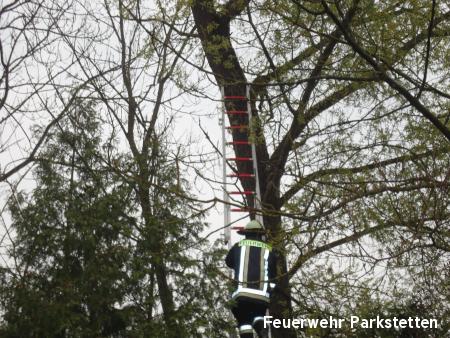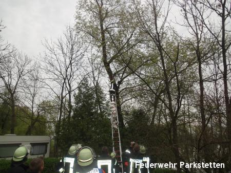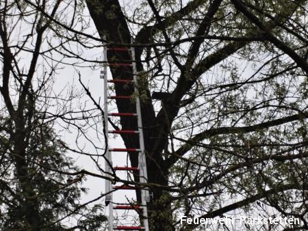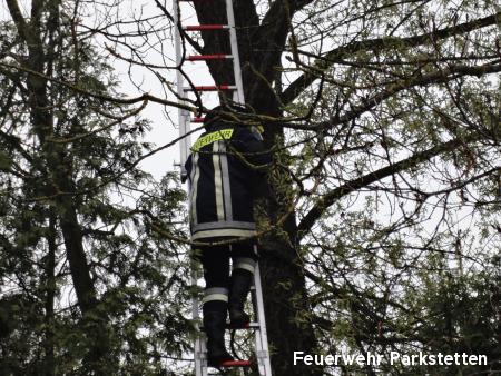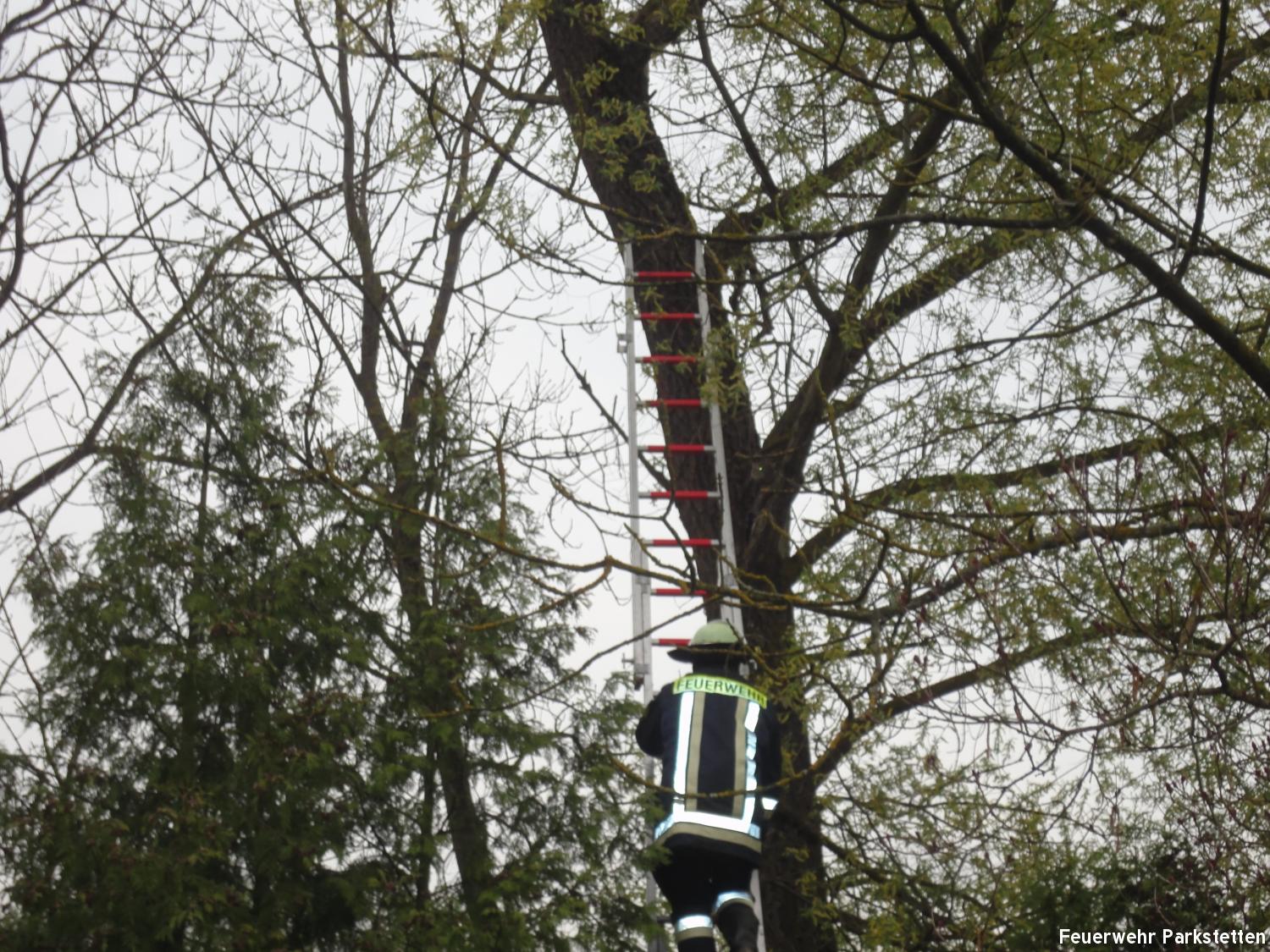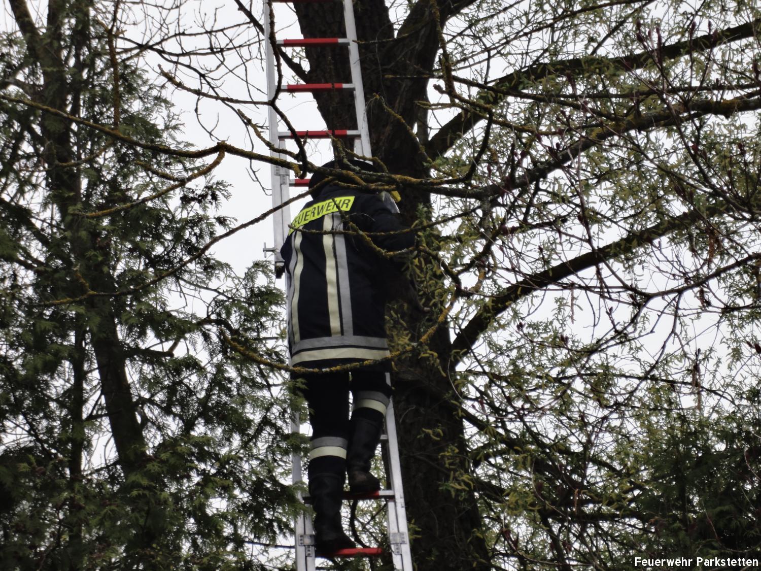 Zu einer Kleintierrettung wurden wir am Sonntagvormittag in die Industriestraße beim Hellerweiher alarmiert. Eine Katze die seit Samstagabend in einem Baum in ca. 8 Meter Höhe verweilte kam ohne fremde Hilfe nicht mehr vom Baum runter. Daraufhin verständigten die Anwohner die Feuerwehr. Mit Hilfe der 4 teiligen Steckleiter wurde die Katze vom Baum befreit und dem glücklichen Besitzer übergeben.