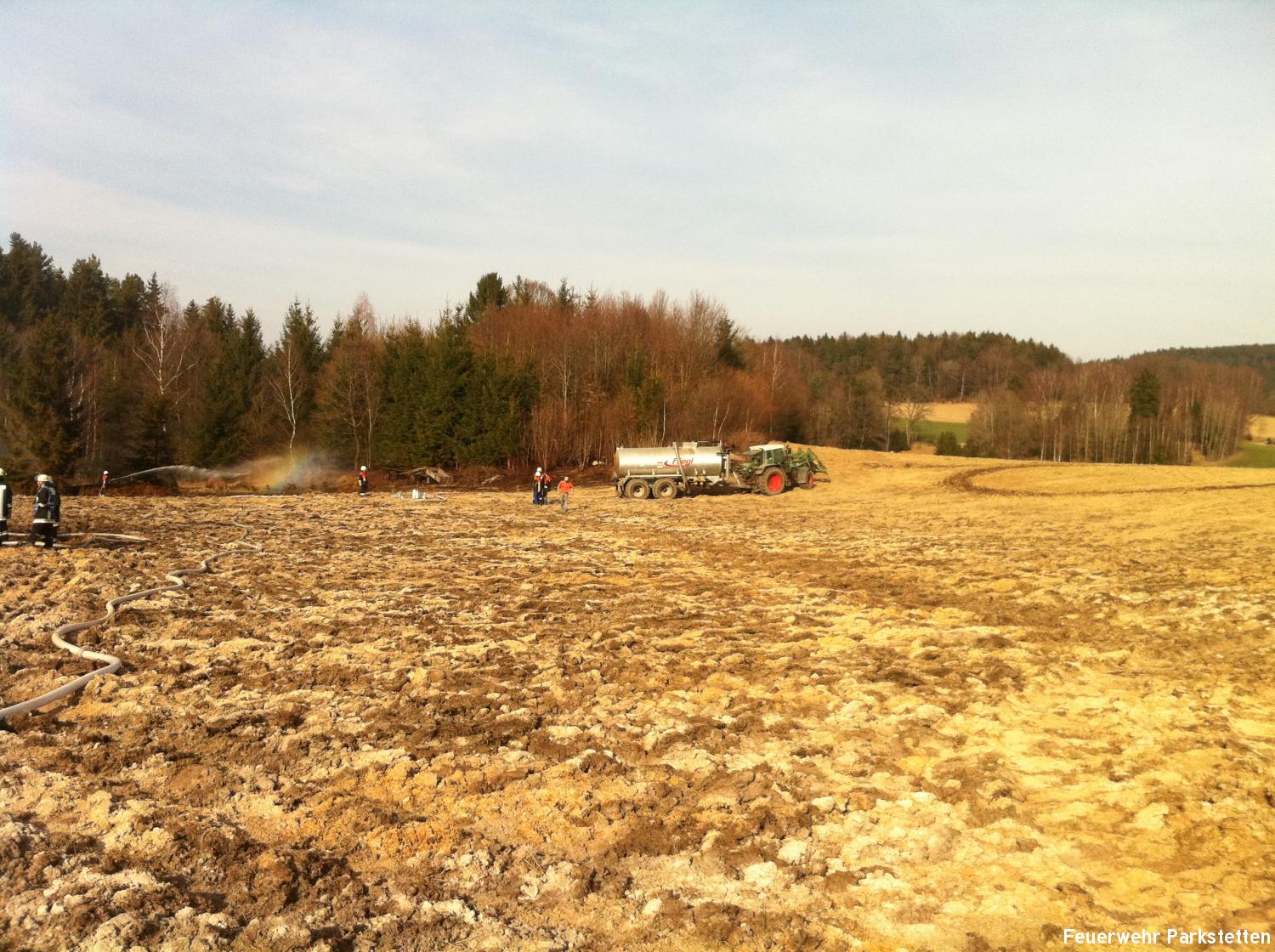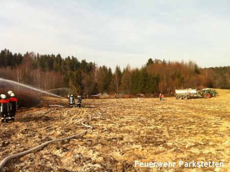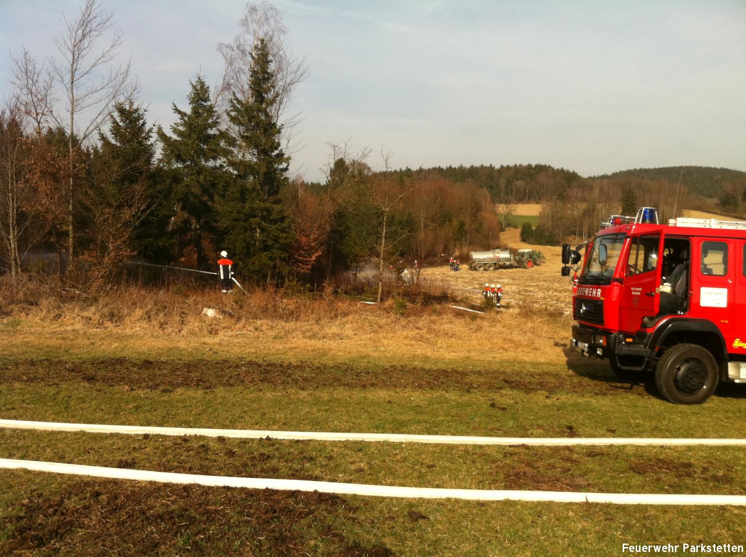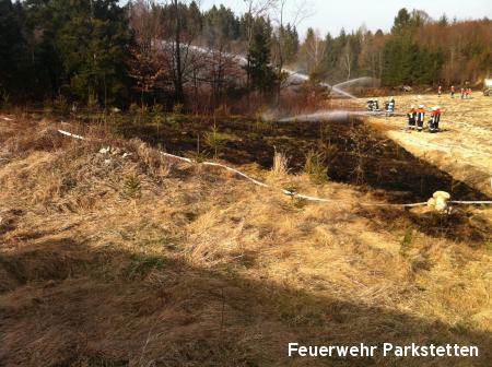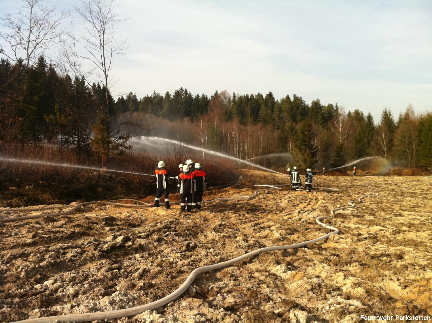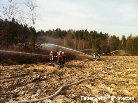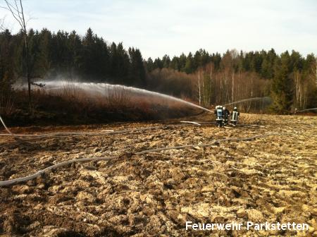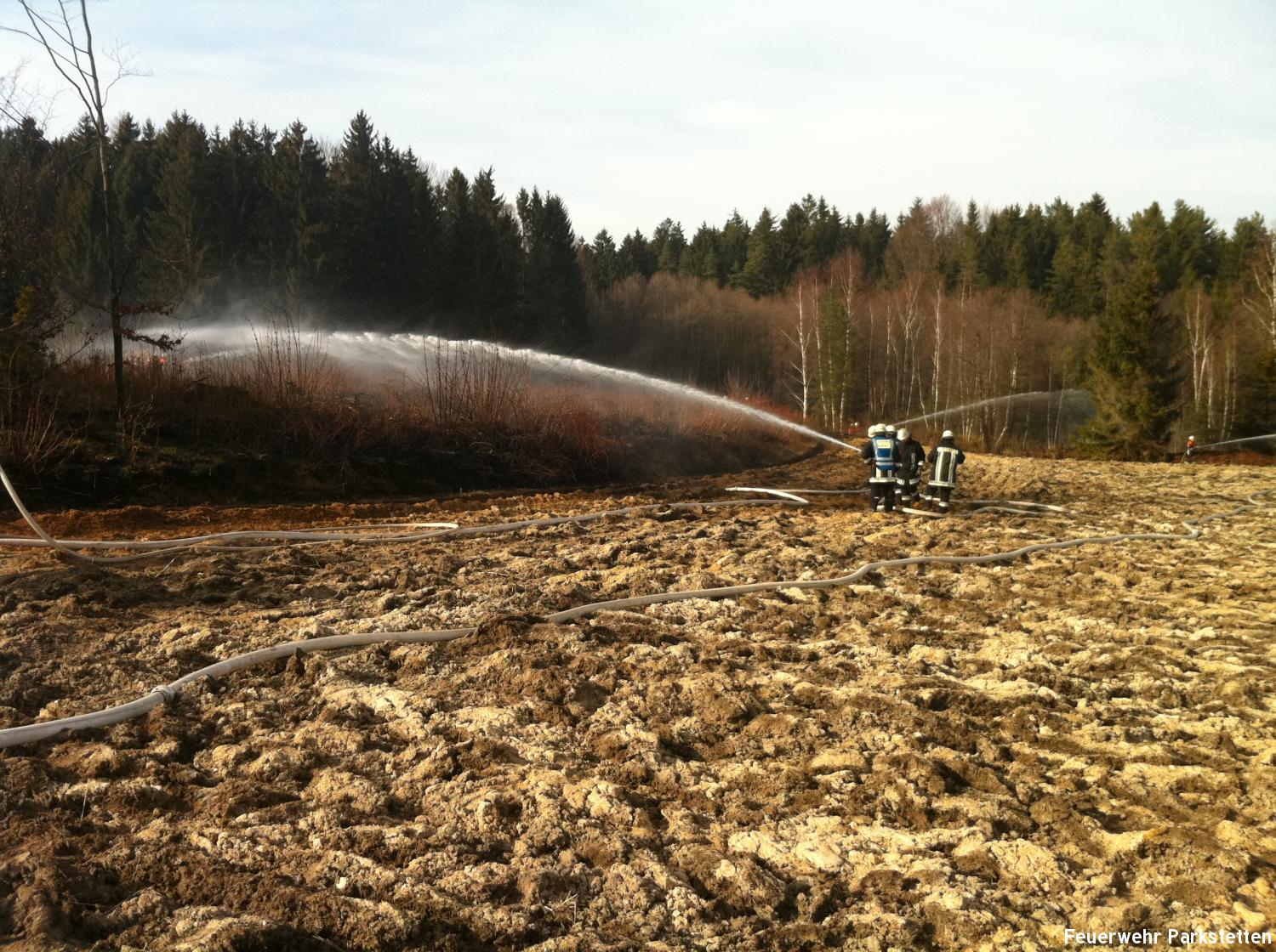 Zu einem Waldbrand wurde die FF Parkstetten mit der UG-Öel nach Haunsbach bei Wiesenfelden alarmiert. Bei der Erstalarmierung wurde ein Weiherdammbrand von 20m x 20m gemeldet. Beim Eintreffen der FF Wiesenfelden stellte sich heraus das das Feuer bereits auf eine größere Fläche darunter ein Waldstück ausgebreitet hat. Daraufhin wurde durch die ILS Straubing weitere Feuerwehren darunter auch die UG-Öel Parkstetten alarmiert. Aufgabe der UG-Öel Parkstetten war die Unterstützung der Einsatzleitung vor Ort, das führen eines Tagebuches sowie eine kleine Lagekarte zu erstellen. Die eingesetzten Feuerwehren löschten die ca. 1000 Quadratmeter Fläche mit Wasser und mit zum Teil schwerem Atemschutz. Das Löschwasser konnte vom Weiher der direkt bei dem Anwesen lag entnommen werden. Nach 2 Stunden war das Feuer komplett aus und die Feuerwehren konnten wieder abrücken.