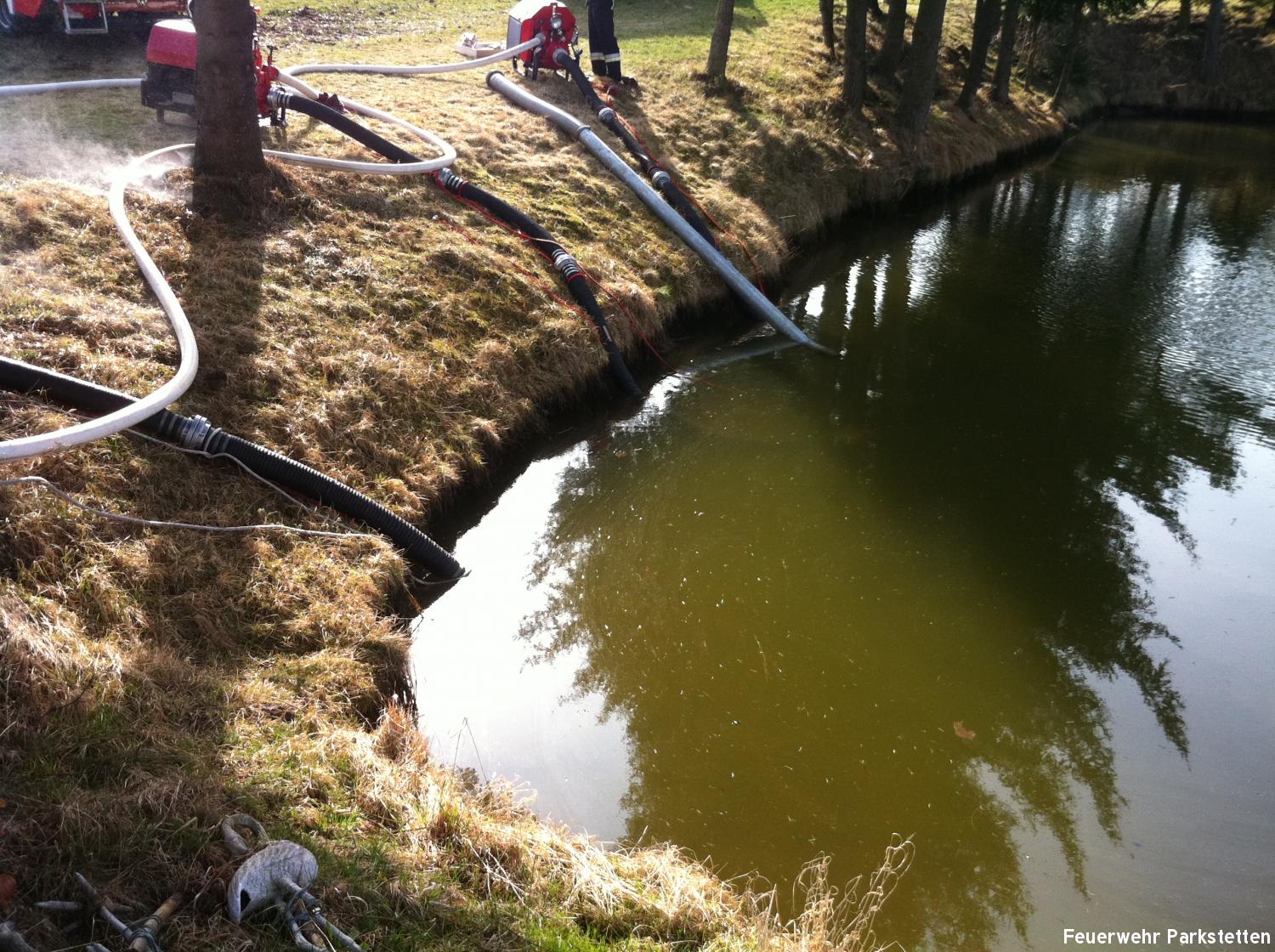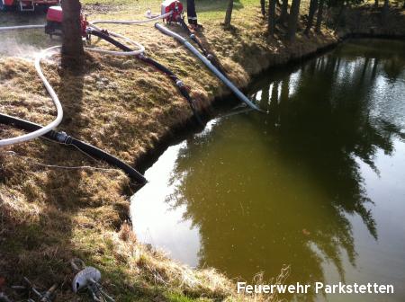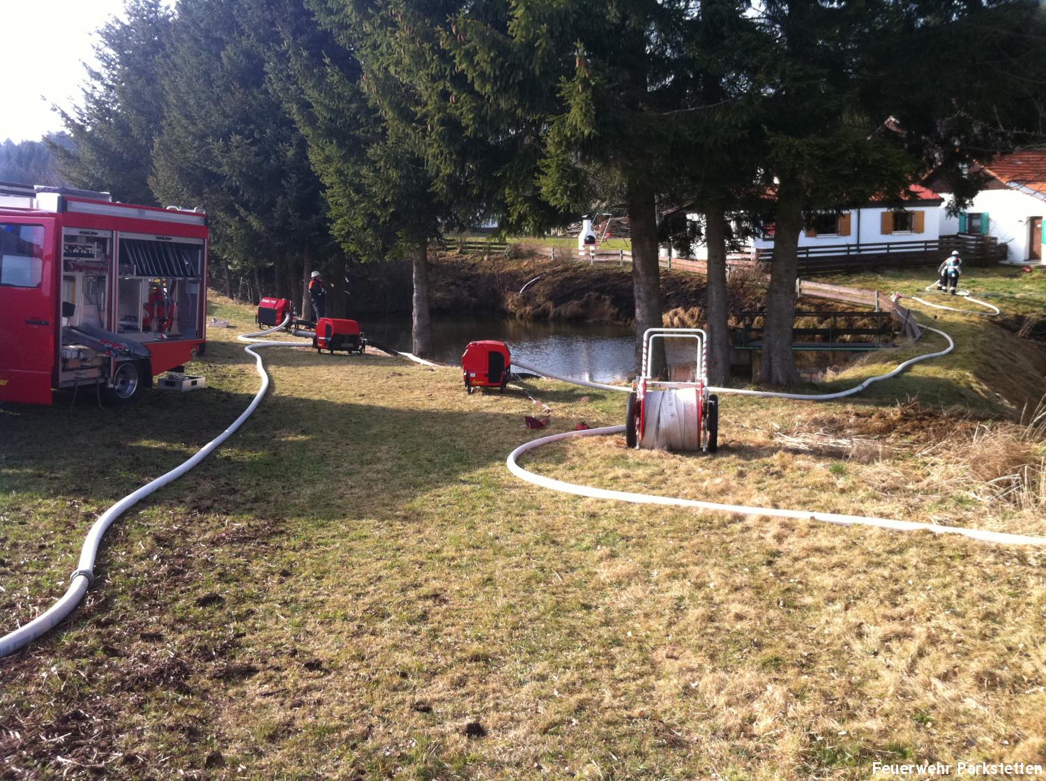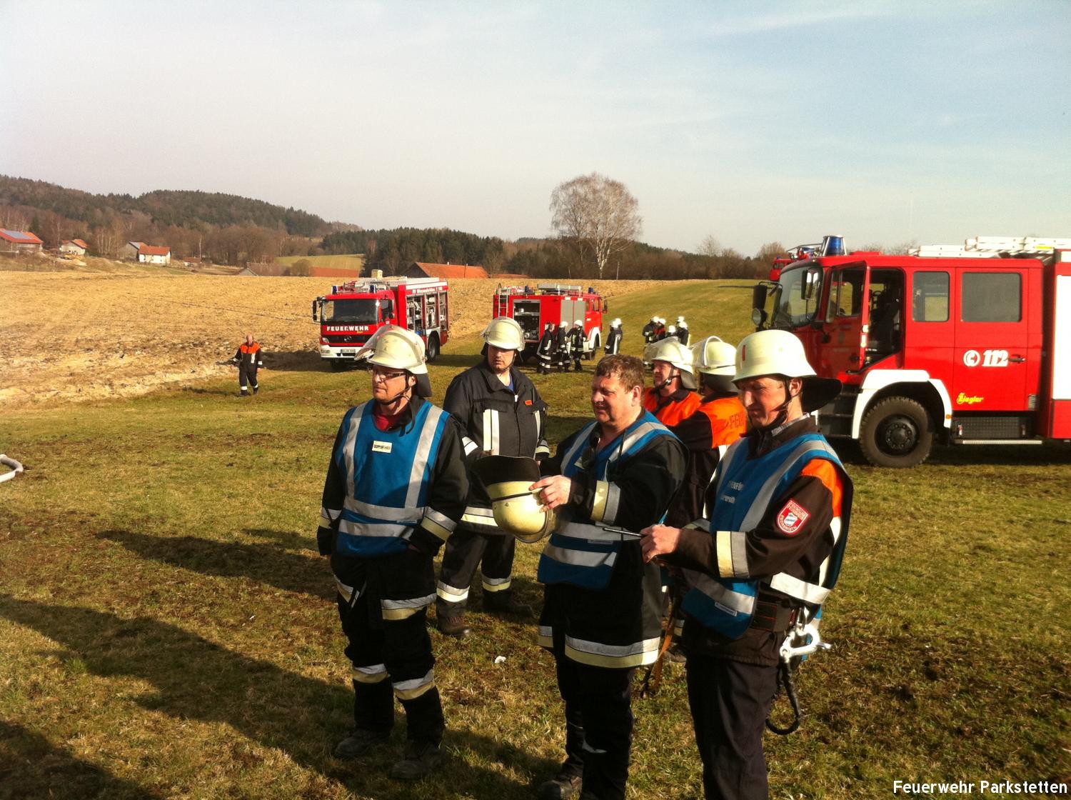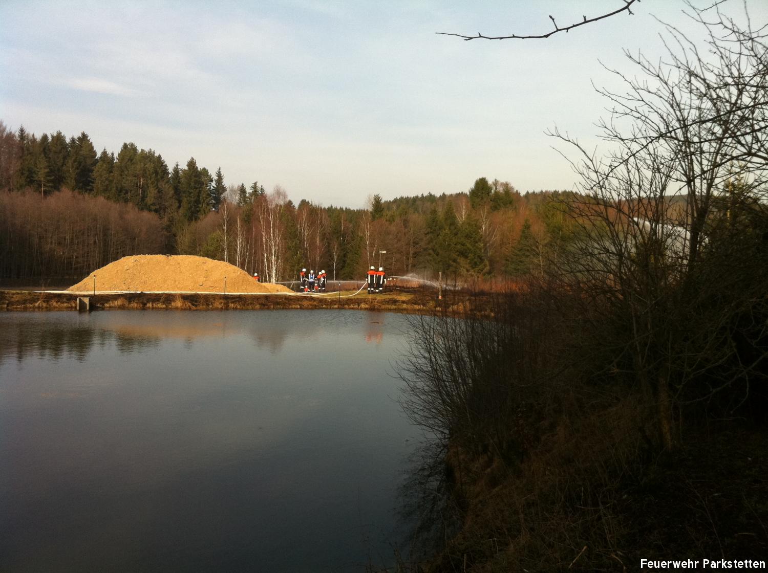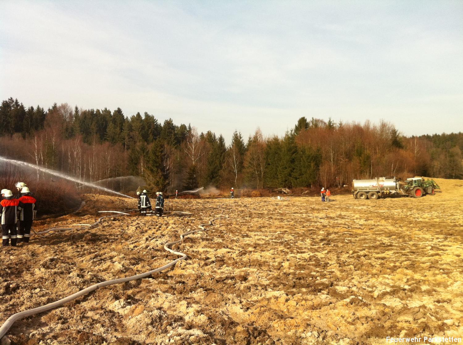 Zu einem Waldbrand wurde die FF Parkstetten mit der UG-Öel nach Haunsbach bei Wiesenfelden alarmiert. Bei der Erstalarmierung wurde ein Weiherdammbrand von 20m x 20m gemeldet. Beim Eintreffen der FF Wiesenfelden stellte sich heraus das das Feuer bereits auf eine größere Fläche darunter ein Waldstück ausgebreitet hat. Daraufhin wurde durch die ILS Straubing weitere Feuerwehren darunter auch die UG-Öel Parkstetten alarmiert. Aufgabe der UG-Öel Parkstetten war die Unterstützung der Einsatzleitung vor Ort, das führen eines Tagebuches sowie eine kleine Lagekarte zu erstellen. Die eingesetzten Feuerwehren löschten die ca. 1000 Quadratmeter Fläche mit Wasser und mit zum Teil schwerem Atemschutz. Das Löschwasser konnte vom Weiher der direkt bei dem Anwesen lag entnommen werden. Nach 2 Stunden war das Feuer komplett aus und die Feuerwehren konnten wieder abrücken.